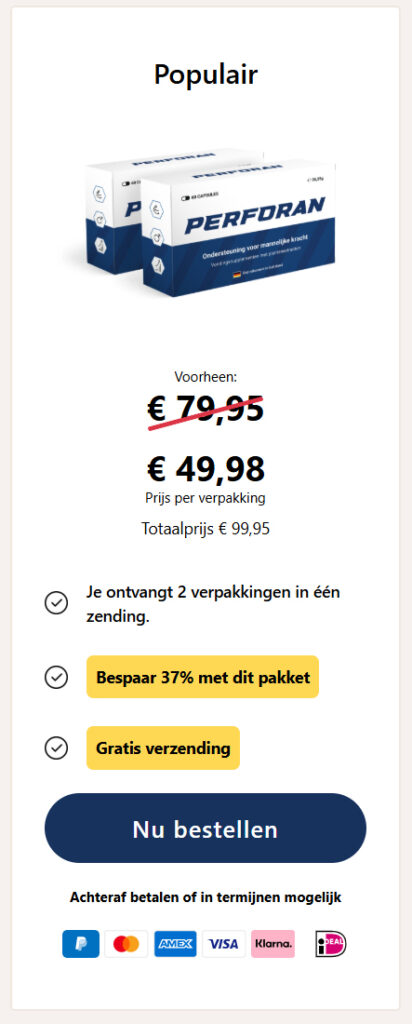 Perforan bevat een uitgebalanceerde mix van natuurlijke extracten zoals maca, ginseng, L-arginine en andere kruideningrediënten die de mannelijke prestaties kunnen ondersteunen.
